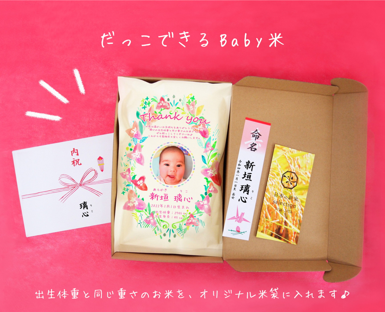 出産祝いにぴったりの贈りもの 生まれたときの体重と同じ重さのお米を、