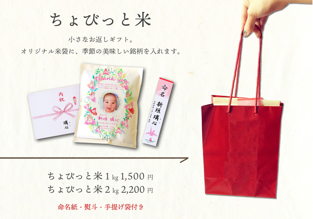 ちょびっと米 小さなお返しにぴったりなギフト「ちょびっと米」。