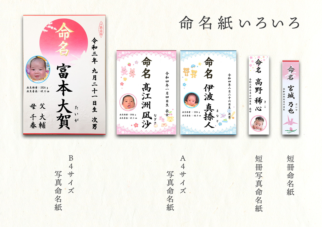 オプション命名紙 命名紙は、B4・A4・短冊タイプの3種類からお選びいただけます。